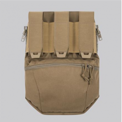 The ASSAULT PANEL pocket layout was made to fit in the CQB role. Top portion has three Velcro®-closed pouches to contain various types of flash-bangs or spare magazines. Large, zipper-closed universal cargo pouch is mounted beneath them. Its lined with soft, velour material so it can be used for carrying scratch sensitive objects, like eyepro or NV goggles. Underneath the whole back of the panel there is a flat pocket for a hydration bladder or breaching tools secured with Velcro®.