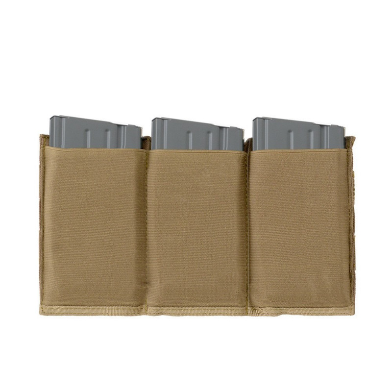 Triple 5.56 magazine pouch compatible with MOLLE platforms and belts, in Coyote pattern.