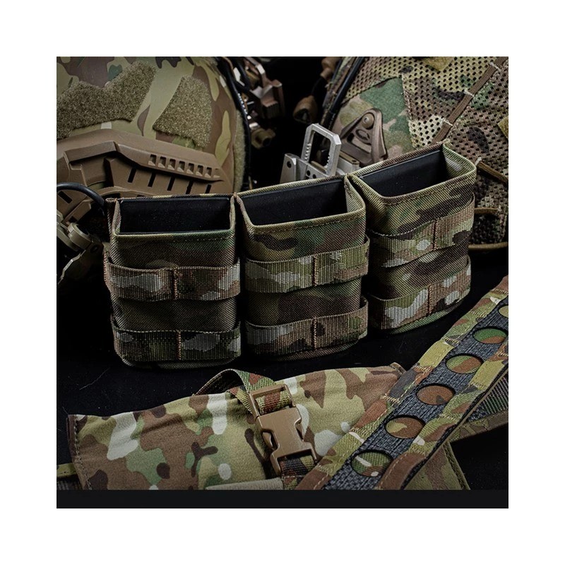 The FAST Type Triple 5.56 Magazine Pouch (Medium) – Black is a practical and efficient solution for carrying three 5.56 mm magazines. Designed for tactical environments, this pouch offers secure retention and quick access to magazines. Compatible with MOLLE systems and belts, it provides versatility in mounting on vests, belts, or backpacks. The Multicam pattern ensures effective camouflage in various environments.