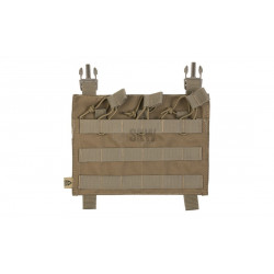 Delta Tactics preconfigured front panel with male clips with 3 quick-release pouches with a clamping rubber on the upper part for three AR, G36, AK... type magazines and front part with molle system to be able to attach more accessories.