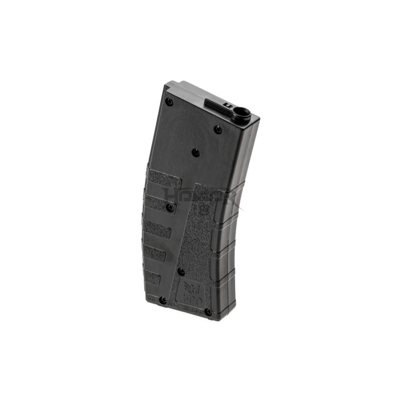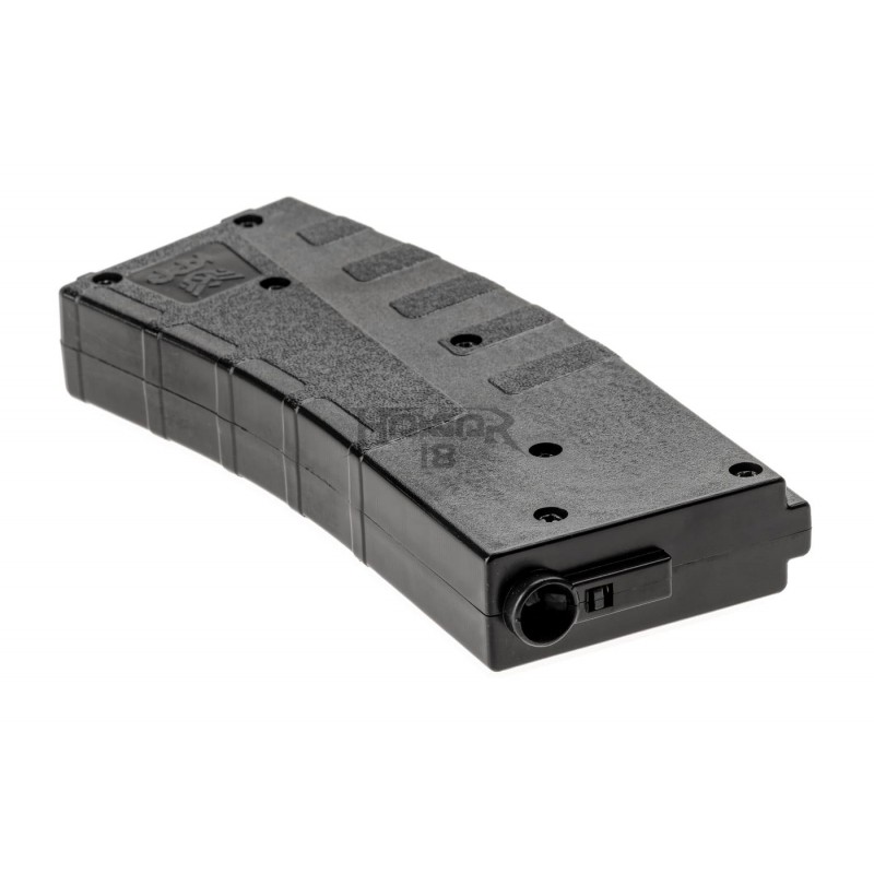 Magazine com carcaça proporcionando maior durabilidade. Feito de polímero reforçado com fibra. Aplicado com material de alta resistência, proporcionando textura externa de alta qualidade. Compatível com a maioria dos AEG no mercado, incluindo Ares, Cyma, APS, G&G, E&L etc.