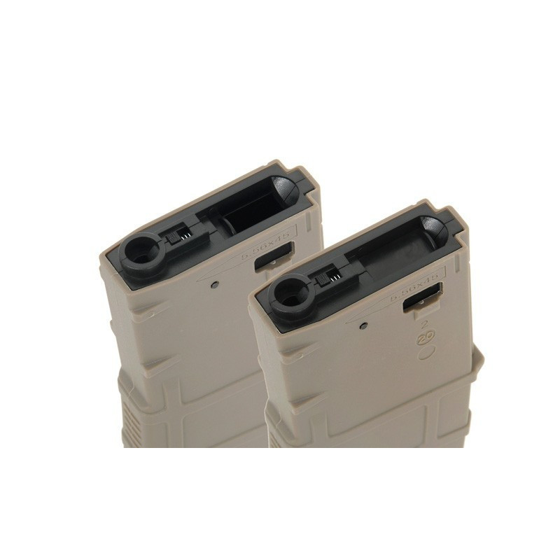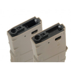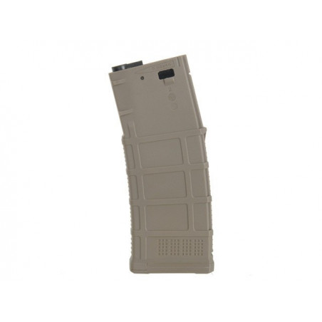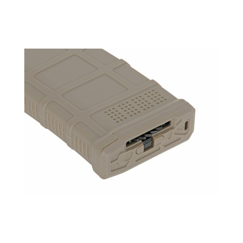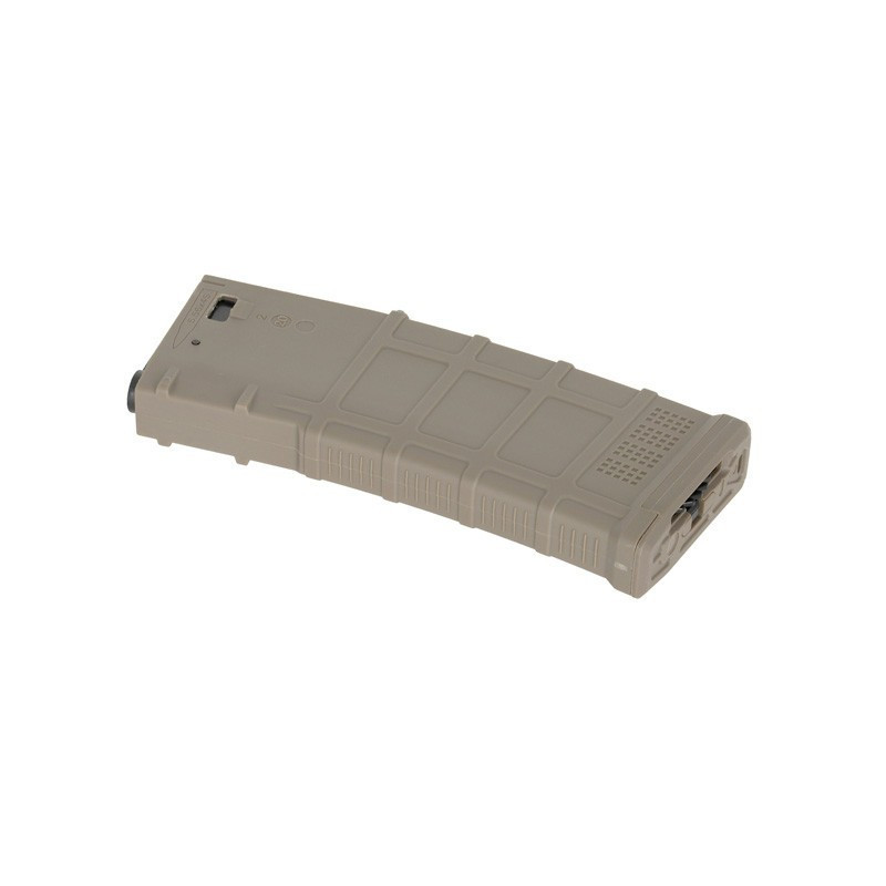 Magazine com carcaça proporcionando maior durabilidade. Feito de polímero reforçado com fibra. Aplicado com material de alta resistência, proporcionando textura externa de alta qualidade. Compatível com a maioria dos AEG no mercado, incluindo Ares, Cyma, APS, G&G, E&L etc.