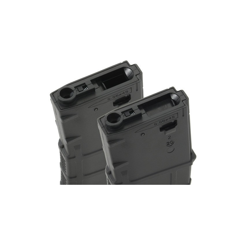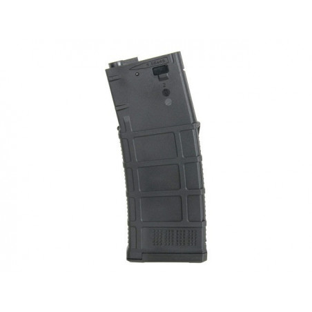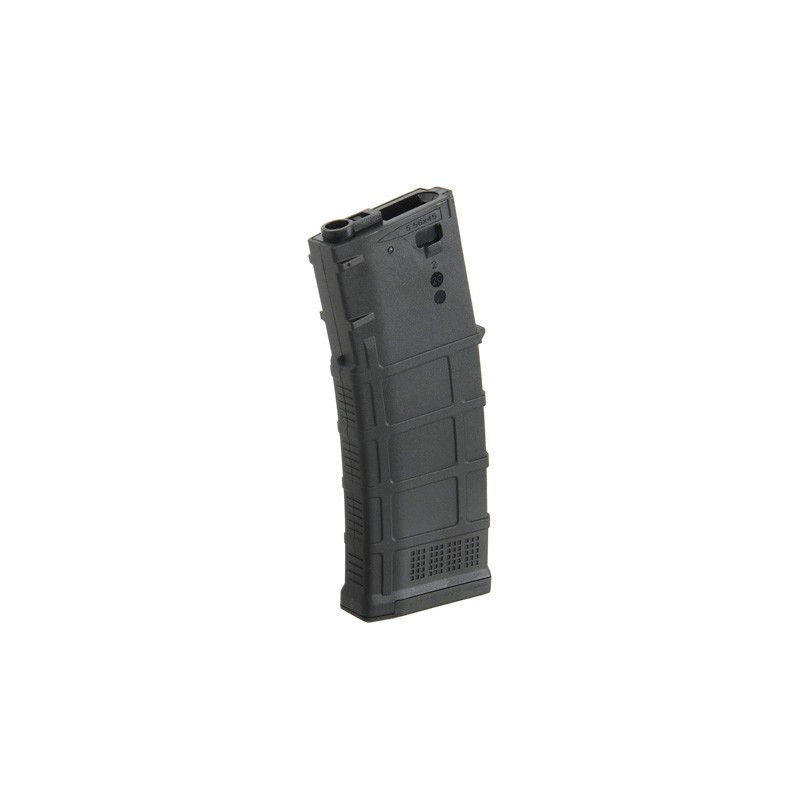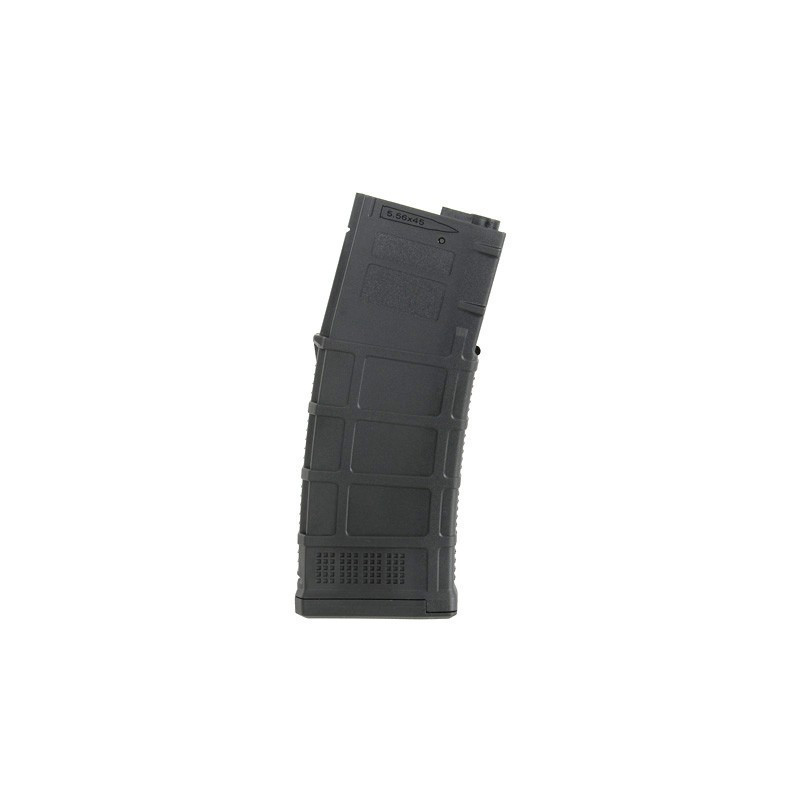 Magazine com carcaça proporcionando maior durabilidade. Feito de polímero reforçado com fibra. Aplicado com material de alta resistência, proporcionando textura externa de alta qualidade. Compatível com a maioria dos AEG no mercado, incluindo Ares, Cyma, APS, G&G, E&L etc.