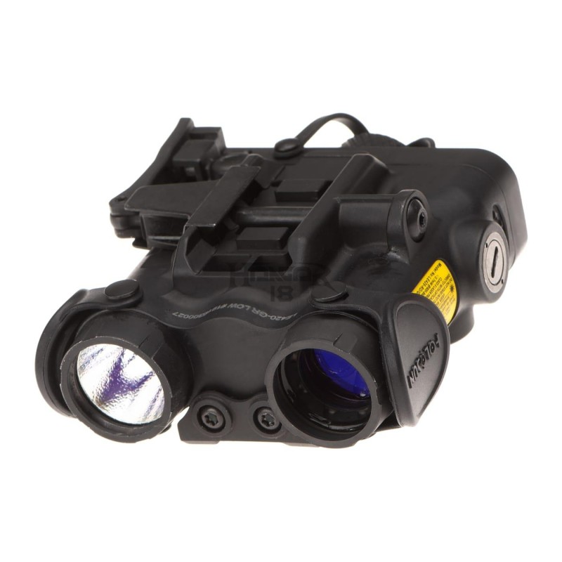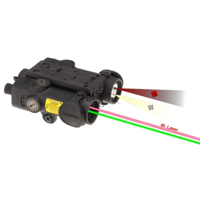 LE420-GR é uma mira laser classe IIIA montada em Picatinny com feixe verde/infravermelho e iluminador IR. O produto é usinado em titânio anodizado com revestimento preto fosco e equipado com um interruptor de gel pad e montagem em trilho Picatinny. As dimensões de 93x78x37mm e um peso de 310g o tornam uma escolha perfeita para aplicações de submetralhadora, carabina e rifle. Graças ao invólucro selado e à classificação IPX8, o LE420-GR é à prova d'água e de choque. O cabeçote optoeletrônico principal consiste em três dispositivos separados: um laser verde visível, um laser infravermelho e um iluminador IR adicional. O laser visível utilizado é um emissor de classe IIIA com um comprimento de onda de 635 nm e uma potência de saída de 1 mW e 5 mW. O laser infravermelho de classe IIM montado coaxialmente funciona em uma potência de saída baixa de 0,1 mW e alta de 0,7 mW. A saída do iluminador IR é medida em 0,7 mW. A segunda cabeça consiste em um iluminador de luz branca de 600 lúmens. Duas baterias CR123A fornecem energia para a mira. Torretas de deriva e elevação são ajustáveis em uma faixa de 60 MOA. O LE420-GR é equipado com uma alavanca ampliada para operação confortável com luvas. Um grampo de montagem sólido para trilhos Weaver e Picatinny garante retenção zero estável e precisão pontual.