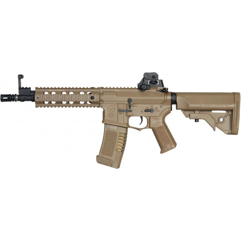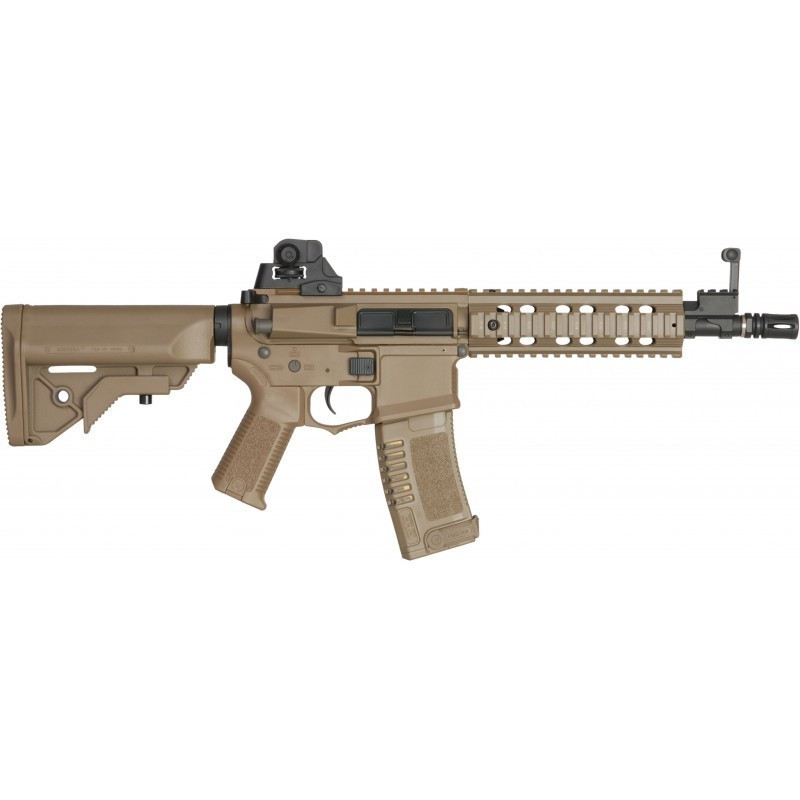 Uma M4 leve e curta, ideal para CQB. Vem com um guarda-mão em polímero de 7" e trilhos RIS ideal para levar lanternas, lasers, AN-PEQ e outros acessórios.