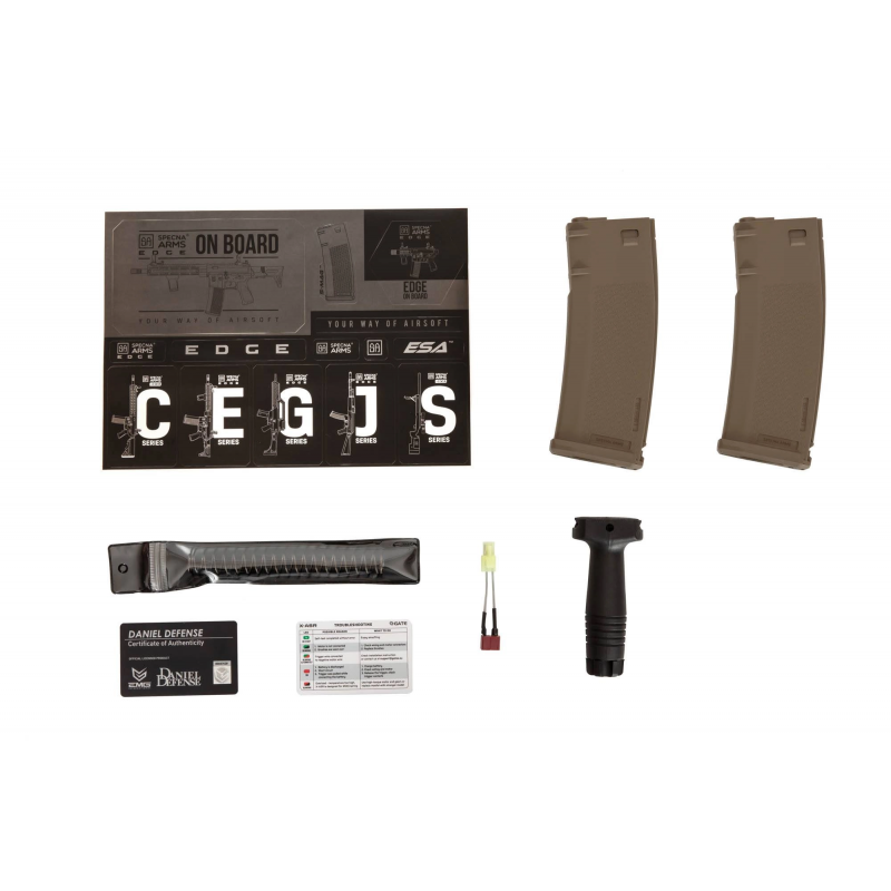Carabina AEG licenciada Daniel Defense® com gearbox reforçado ORION, sistema HAL™ programável e acabamento resistente a riscos.