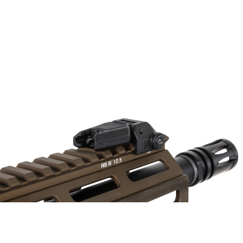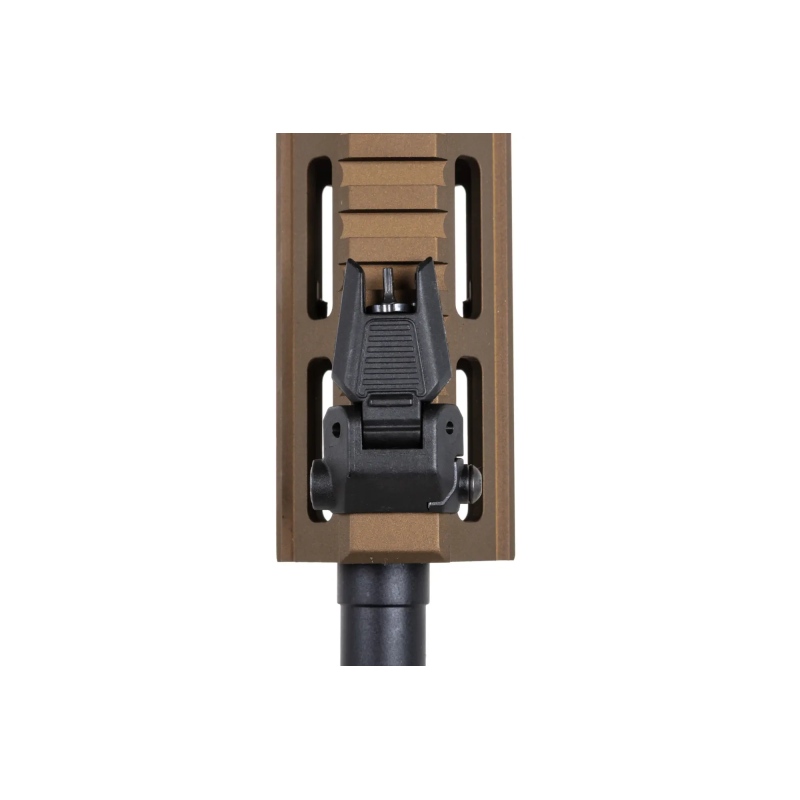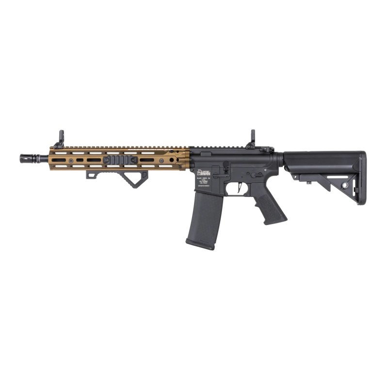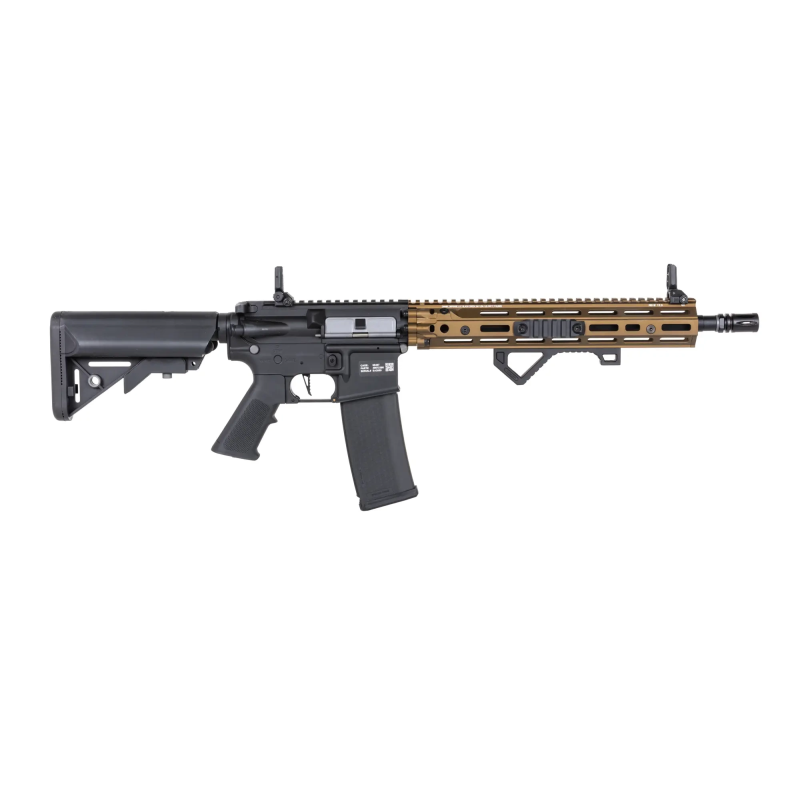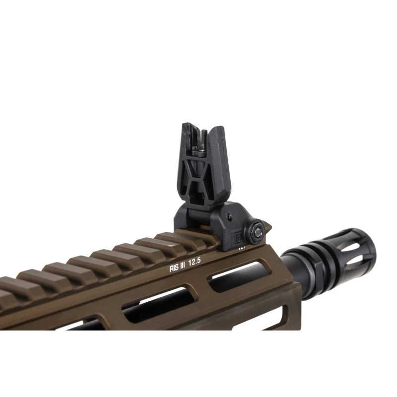 Carabina AEG com corpo reforçado, sistema HAL ETU Gen.2 e hop-up ajustável — versão Chaos Bronze com 125 BBs de capacidade.