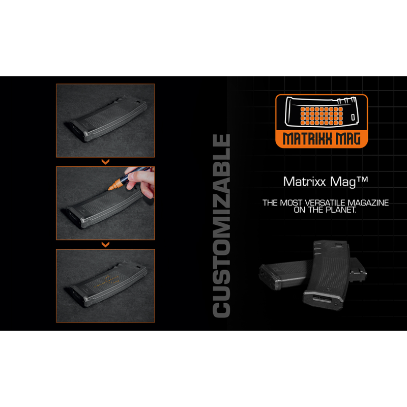 O sistema de hop-up rotativo ajustável trabalha com cano interno de precisão de 6,01 mm, garantindo consistência e precisão por cada disparo. A carabina acompanha um magazine Matrixx™ 320 BB, considerado um dos melhores no mercado pela sua alimentação estável e grip firme, mesmo com luvas.