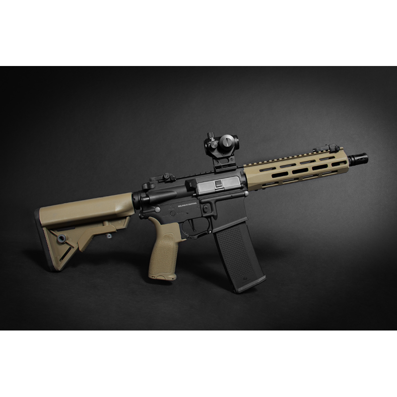 Uma M4 leve e curta, ideal para CQB. Vem com um guarda-mão em polímero de 7" e trilhos RIS ideal para levar lanternas, lasers, AN-PEQ e outros acessórios.