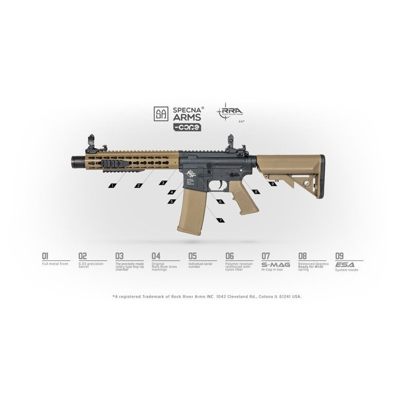 Uma réplica da série Core, elétrica, da Specna Arms, com alguns upgrades e mosfet X-ASR de série, torna esta arma perfeita para iniciantes.