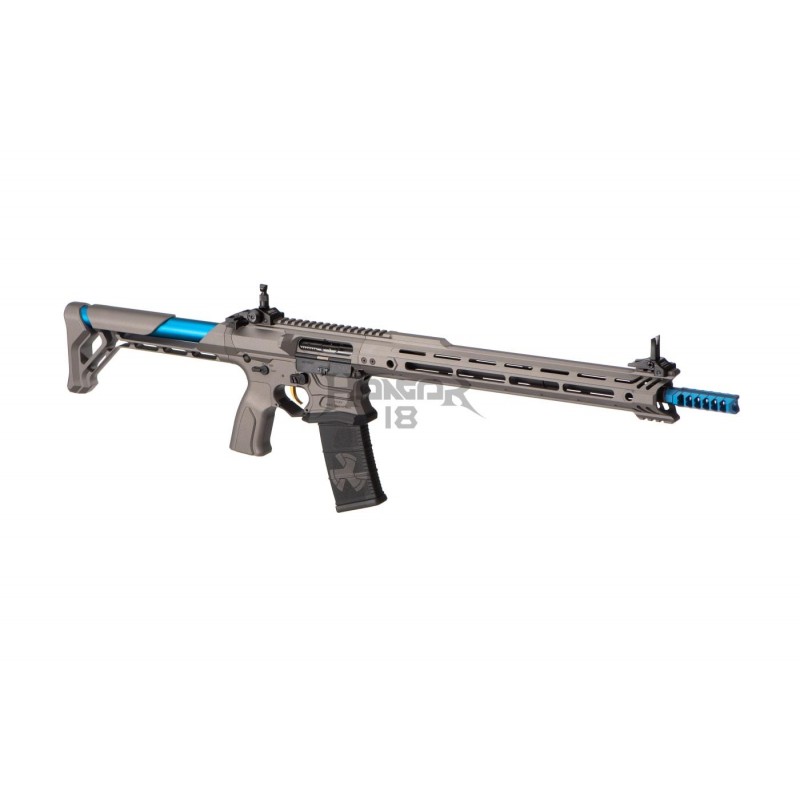 O cano é equipado com uma rosca CCW de 14 mm e pode receber diferentes dispositivos de focinho, supressores e rastreadores. A coronha fixa feita de polímero de alta qualidade é confortável de usar. A bateria é colocada dentro do tubo de buffer. A caixa de engrenagens V2 personalizada equipada com MOSFET é pareada com um sistema ETU inovador para excelente tempo de reação do gatilho e cultura de trabalho. A caixa de engrenagens reforçada apresenta um sistema de troca rápida de mola. Os manipuladores duplos com pontos de fixação QD o tornam amigável para ambidestros.