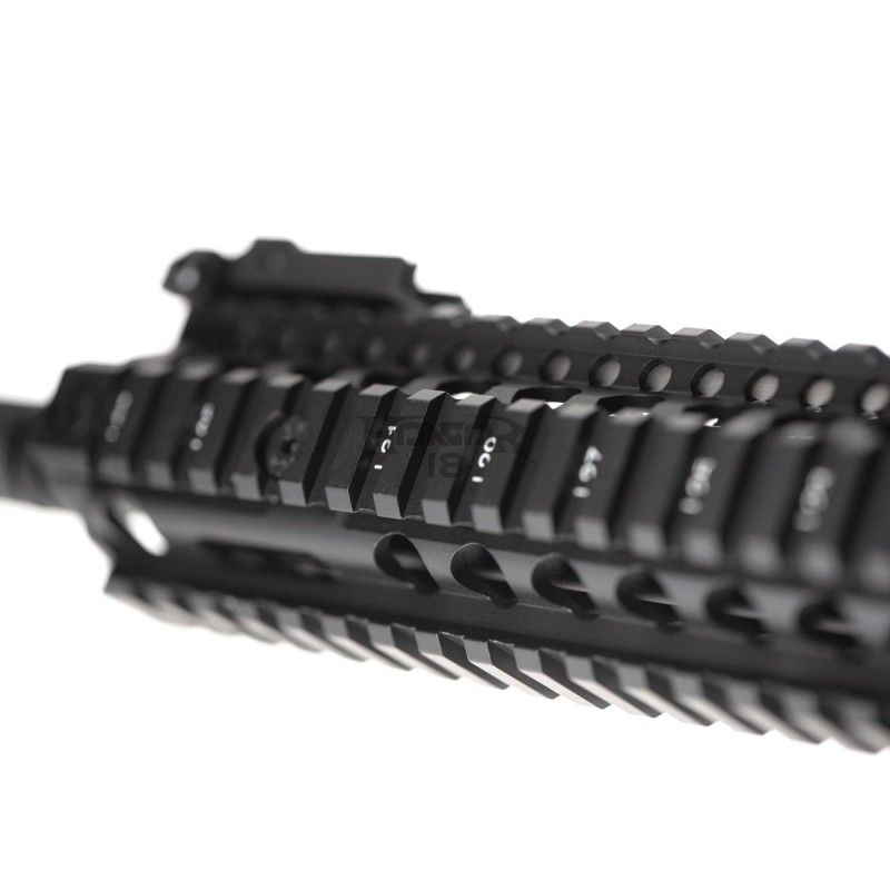 Na frente, podemos encontrar um handguard RIS de alumínio de flutuação livre com um trilho na parte superior. Esta configuração permite que o usuário conecte um tipo diferente de acessórios adequados à sua preferência ou requisitos de missão.