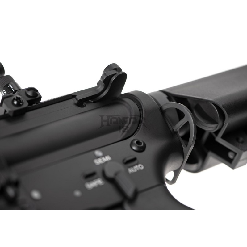 Todas as principais peças de metal são anodizadas em um revestimento anticorrosivo e feitas com uma liga de alumínio de primeira qualidade. O estoque tipo SF feito de polímero de alta qualidade é confortável de usar. Ele também é construído especificamente para aceitar baterias de réplica.