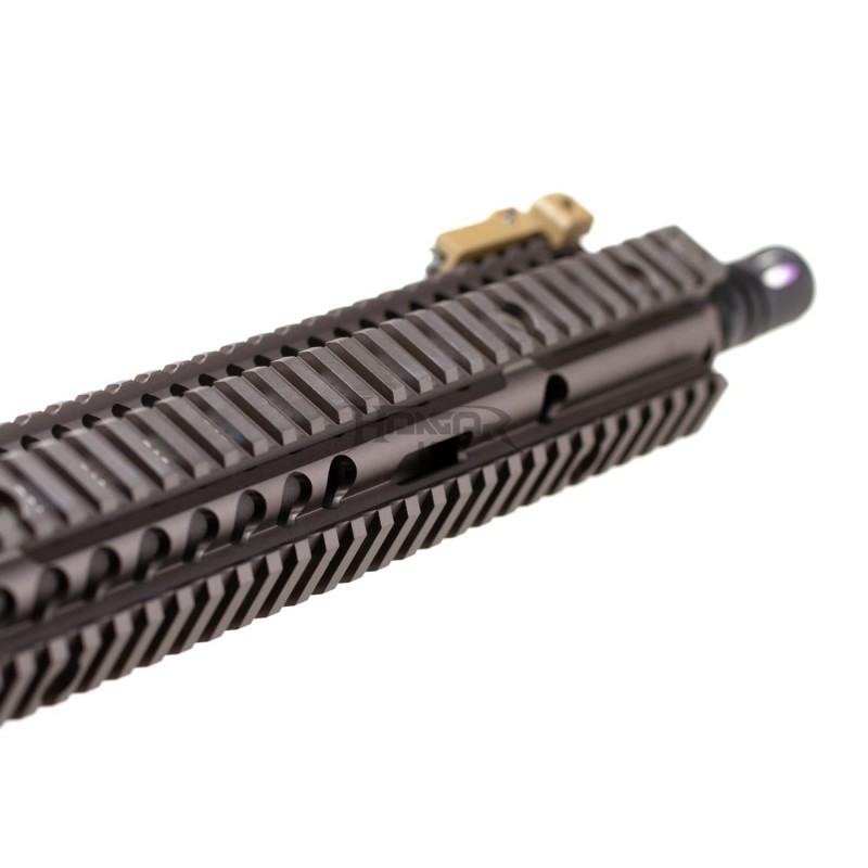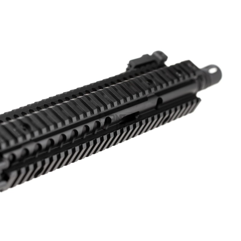 Na frente, podemos encontrar um handguard de alumínio de flutuação livre equipado com um sistema RIS e pareado com um trilho na parte superior. Esta configuração permite que o usuário conecte um tipo diferente de acessórios adequados à sua preferência ou requisitos de missão.