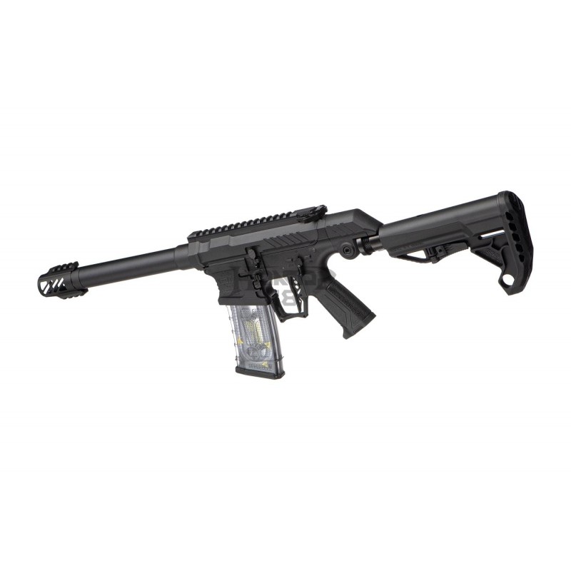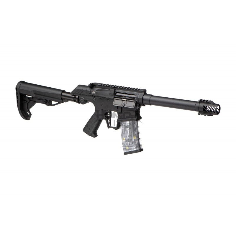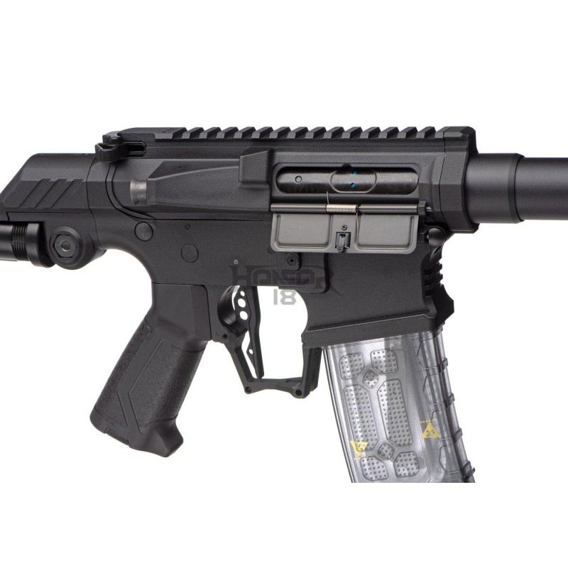 O estoque dobrável feito de polímero de alta qualidade é confortável de usar. Ele também é construído especificamente para aceitar baterias de réplica e é fácil de manusear em espaços confinados e esconder. A dobradiça horizontal permite uma configuração confortável com as máscaras de airsoft dedicadas. A caixa de engrenagens V2 equipada com MOSFET é pareada com um sistema ETU inovador para excelente tempo de reação do gatilho e cultura de trabalho. Ele também possui um gatilho e guarda-mato ampliados, uma câmara de rotação hop-up e um sistema de troca rápida de mola.