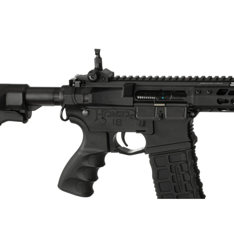 O cano é equipado com uma rosca CCW de 14 mm e pode receber diferentes dispositivos de focinho, supressores e Tracers. A coronha retrátil feita de polímero de alta qualidade é confortável de usar. Também é fácil de manusear em espaços confinados e simples de guardar. A bateria é colocada dentro do tubo de buffer. A caixa de engrenagens V2 equipada com MOSFET é pareada com um sistema ETU inovador para excelente tempo de reação do gatilho e Lifetime.