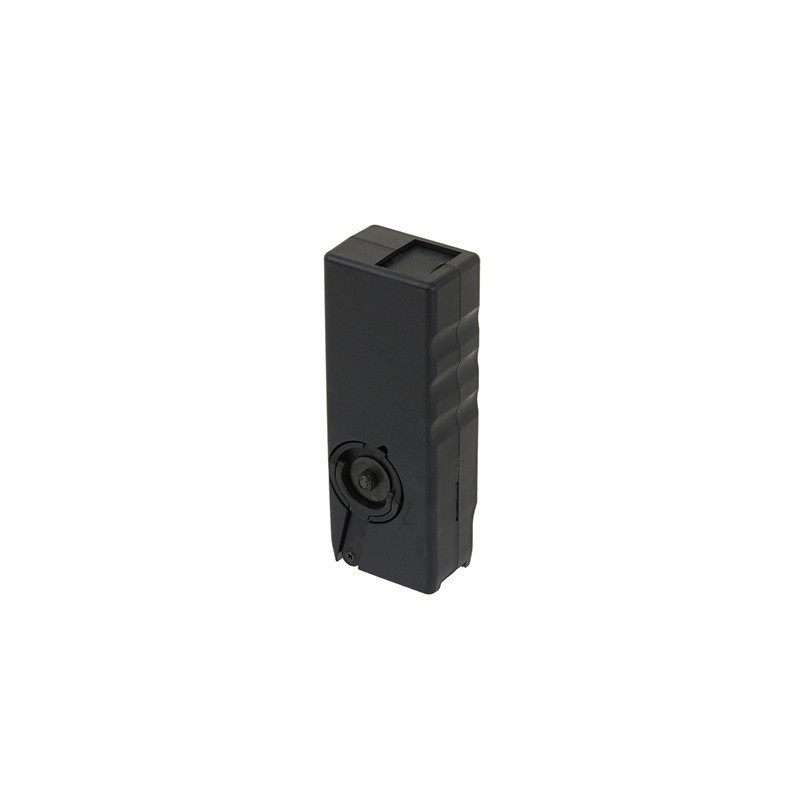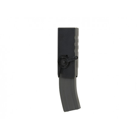 Você só precisa inserir o seu magazine M4 no até trancar, depois enrolar a roda para carregar o seu magazine. Qualquer magazine M4 mid cap pode ser totalmente carregado em menos de 5 segundos