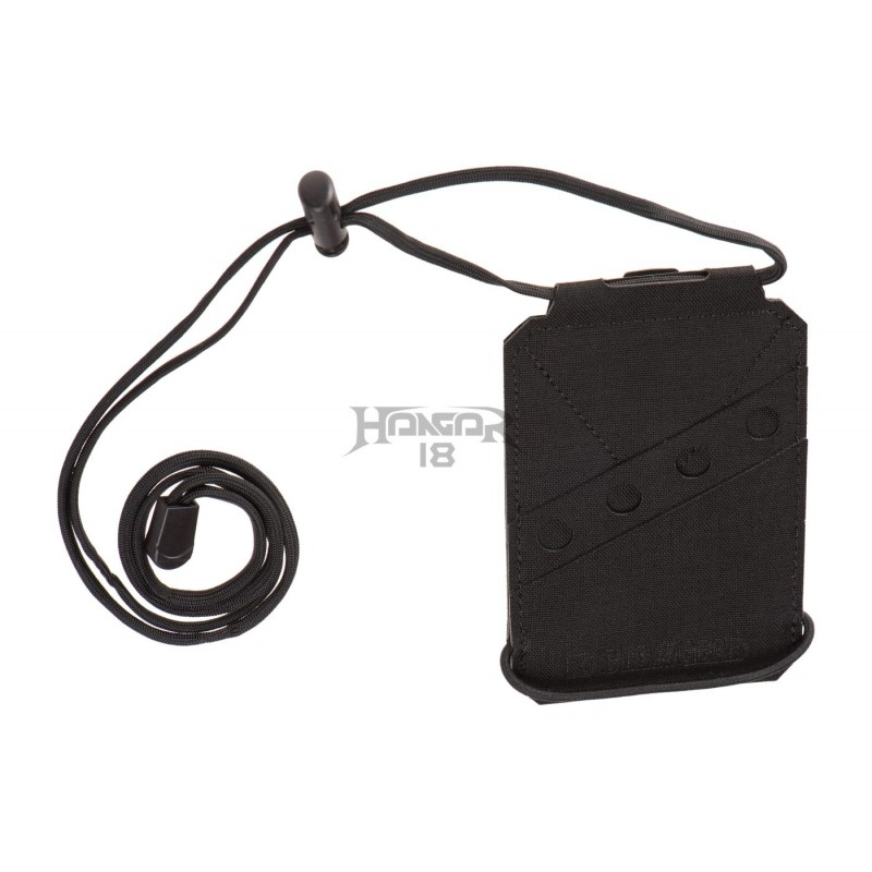 O porta-identidade multiuso é um suporte para cartão de identificação que pode ser fixado em qualquer superfície de velcro ou em um adaptador de alça de pescoço incluso.