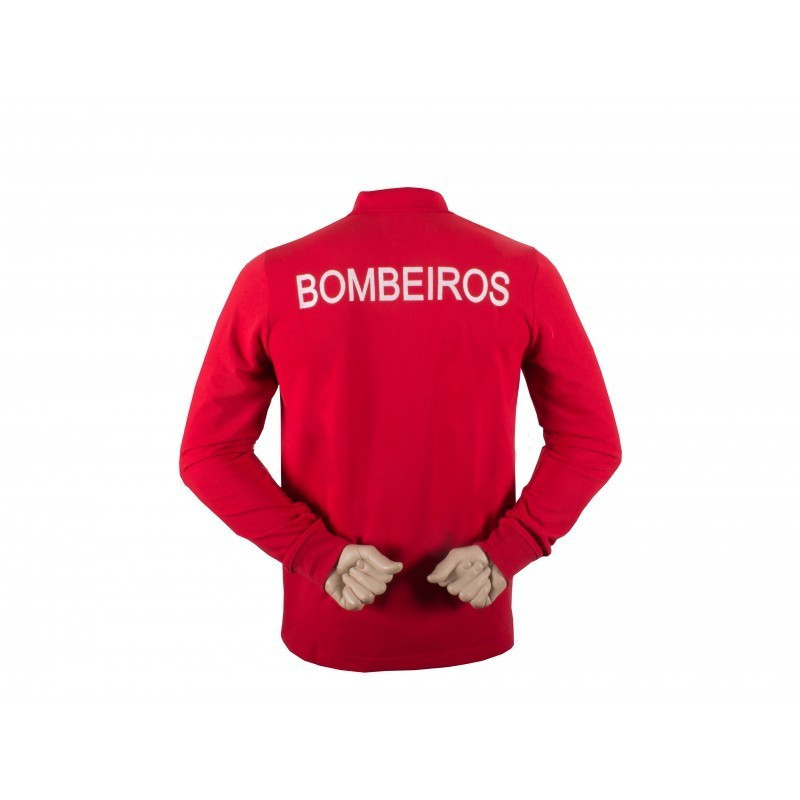 Inscrição "BOMBEIROS" gravada a cor branca, à frente do lado esquerdo e nas costas.