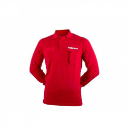 Pólo em malha piquet, de algodão, de cor vermelha.