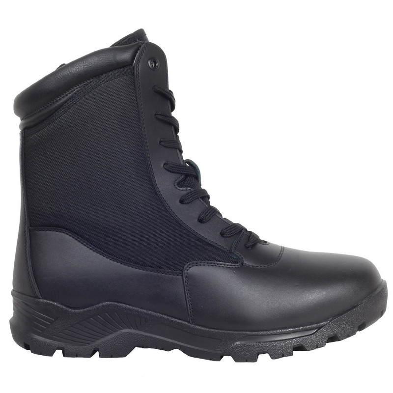 Botas MAGNUM Wolf 8.0 Side Zip com fecho lateral, feitas de uma combinação leve e resistente de couro e nylon balístico. Botas policiais com grande conforto e leveza, com gola baixa e equipada com sola antiderrapante. Ilhós e anéis de PVC.