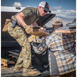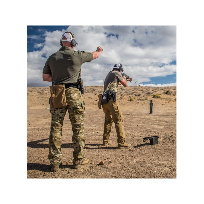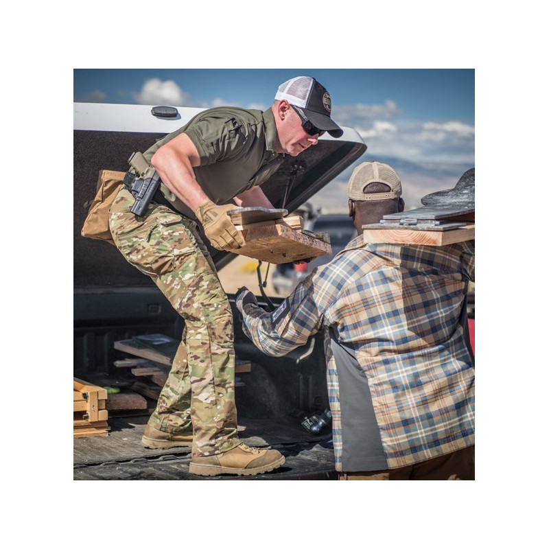 Pela disposição criteriosa dos bolsos, o equipamento pode ser colocado perto da massa central, em torno dos quadris e da cintura. As bordas dos bolsos dianteiro e traseiro são reforçadas para suportar o movimento constante de clipes de lanterna ou faca. Dois bolsos frontais com fecho de velcro são grandes o suficiente para transportar um smartphone - ou até mesmo uma magazine de AR / AK. Os bolsos com zíper da coxa parecem planos - mas seu design permite que bolsas ou carteiras sejam transportadas com facilidade. Bolsos internos nos joelhos podem serem preenchidos com protetores de baixo perfil. Três tipos de tecido mais ampla variedade de cores permitem combinar calças para o resto do guarda-roupa ou condições de trabalho.