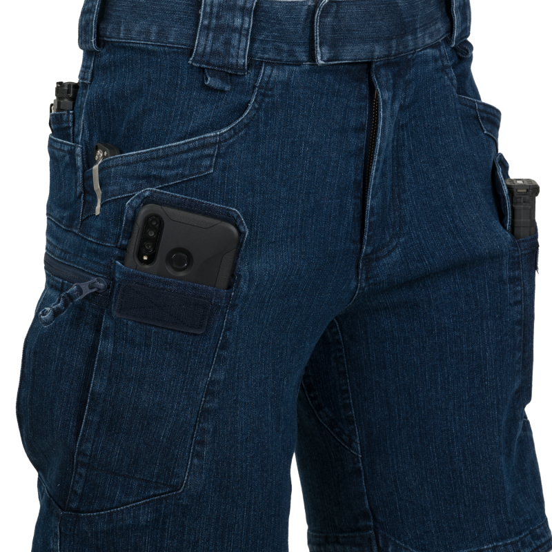 O que fazer, quando o calor é sufocante e você ainda precisa ser tático e precisa de toda a funcionalidade tática das calças UTP®? Experimente o UTS®, o Urban Tactical Shorts® ou a versão de curta das calças mais vendidas da Helikon-Tex. O layout de corte e bolsos permite que eles permaneçam civis o suficiente para não divulgar a identidade do utilizador, enquanto ainda permitem usar um conjunto completo de equipamentos táticos. O cinto elástico de velcro permite uma medida de ajuste dentro do tamanho. Grandes presilhas permitem cintos largos como EDC, UTL® ou Cobra®. Além disso, o corte (cortado de jeans azul, dentre todos os que podem ser escolhidos) evita que os calções sejam soltos durante o uso. Pela disposição criteriosa dos bolsos, o equipamento pode ser colocado próximo ao centro de massa, ao redor dos quadris e da cintura. As bordas dos bolsos frontais e traseiros são reforçadas para suportar o movimento constante de clipes de luz ou faca. Dois bolsos frontais com velcro são grandes o suficiente para transportar um smartphone e ou até mesmo um carregador de AR / AK. Os bolsos com zíper nas coxas parecem planos, mas seu design permite que bolsas ou carteiras sejam transportadas com facilidade. Uma grande variedade de cores permite combinar os calções com o resto do guarda-roupa ou condições de trabalho.
