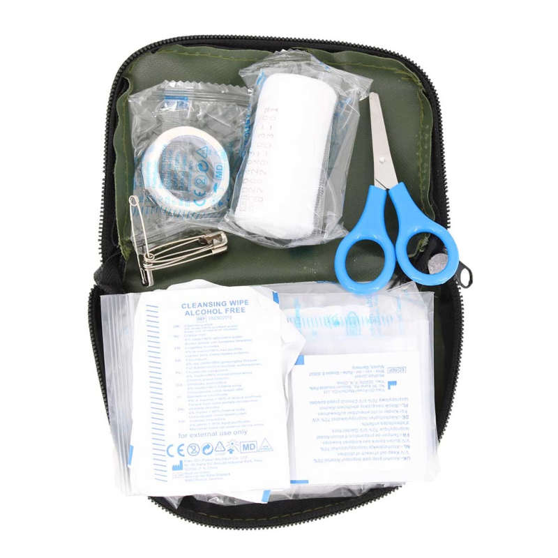 Bolsa compacta de primeiros socorros com sistema MOLLE. Ideal para uso tático, outdoor ou EDC.