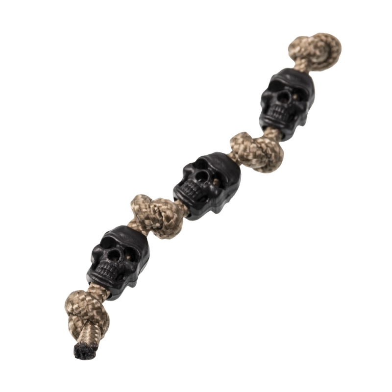 Pack com 10 travões de cordão em forma de caveira. Leves, resistentes e sem mola metálica. Ideal para mochilas, vestuário ou acessórios táticos.