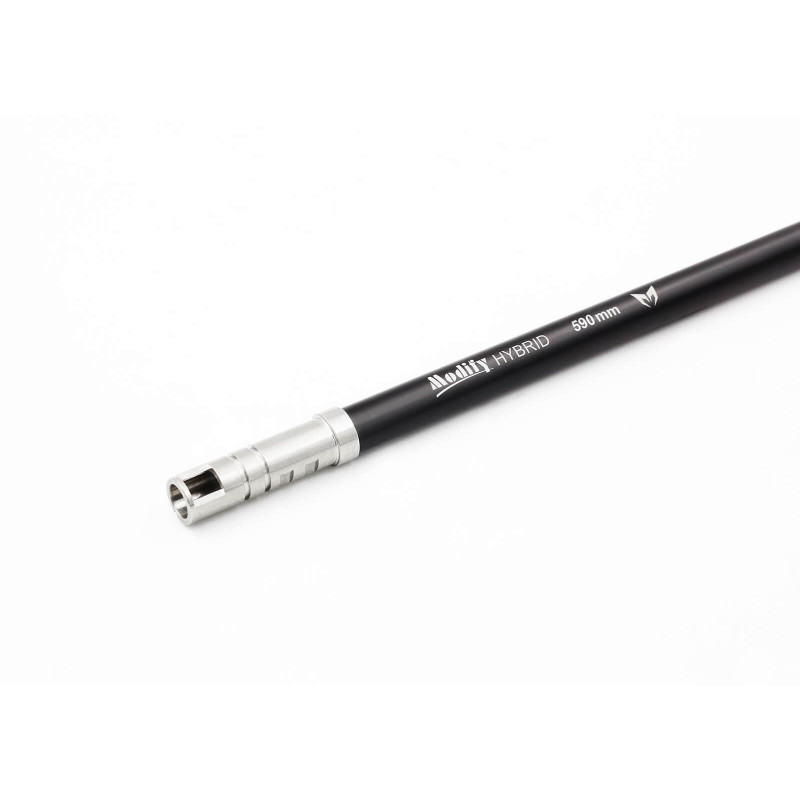 O Cano de Precisão Híbrido da Modify tem 590 mm de comprimento com diâmetro interno de 6,01 mm, adequado para PSG-1. Feito de aço inoxidável de alta qualidade e liga de alumínio para aeronaves, o cano é extremamente direito com alta rigidez, o que permite que as AEGs alcancem maior alcance e melhor desempenho geral. O design do O-Ring reduz a vibração do cano para melhorar a precisão.