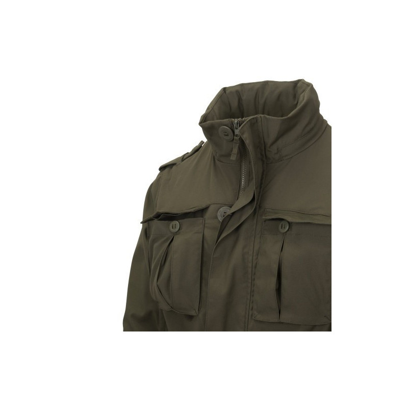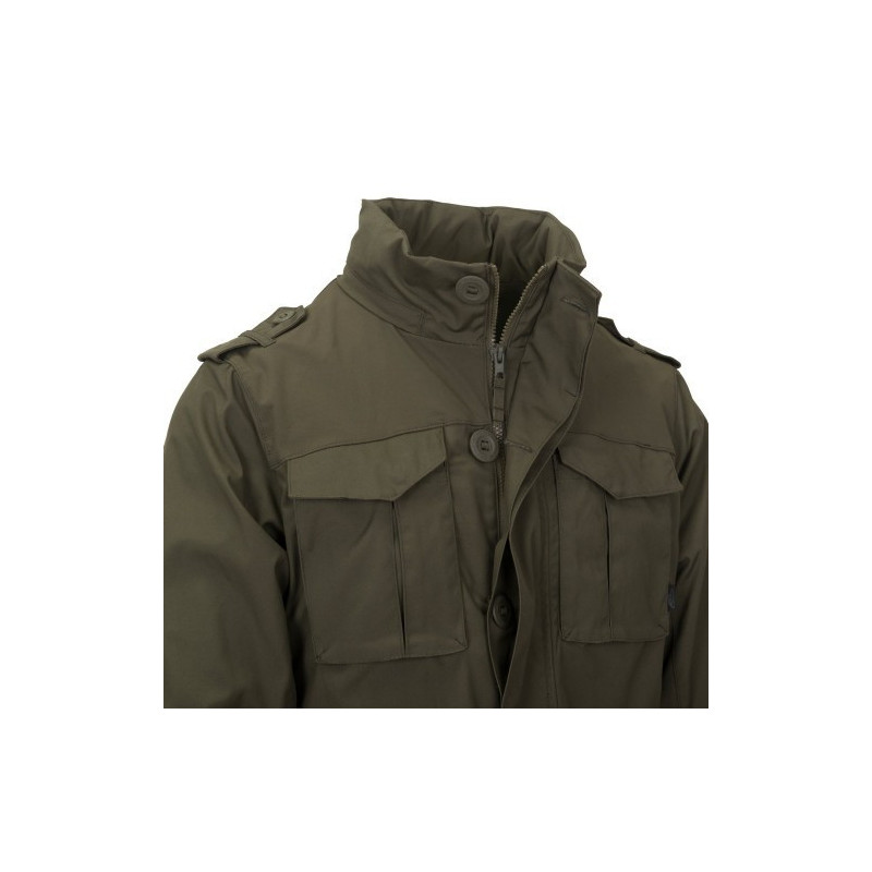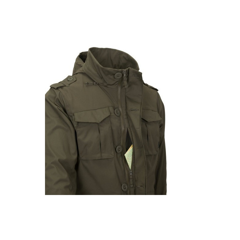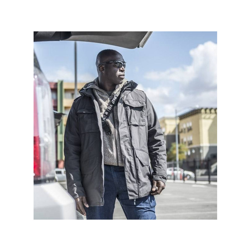 O Casaco Covert M65 Jacket é um casaco de campo moderno baseada no icônico padrão M65. É perfeito para operações secretas quando discrição e métodos de trabalho não convencionais são importantes. Equipado com bolsos externos funcionais, permite que você carregue convenientemente itens necessários para desempenho e autodefesa. Graças ao uso de um tecido durável DuraCanvas®, também será uma excelente escolha para o uso diário, especialmente no outono e inverno, quando protegerá o utilizador da chuva fraca e do vento. Uma patente exclusiva usada no casaco M65 é um bolso que pode ser destacado e usado como uma bolsa separada para documentos ou telefone. No interior, simetricamente do lado esquerdo e do lado direito, existem bolsos para carregadores. Os dois bolsos externos nas laterais podem servir como bolsas de despejo improvisadas. Este casaco clássico militar foi reforçado em locais expostos a danos e equipado com um capuz escondido na gola. A frente é fechada com botões canadienses fortes e um zíper "break-away" que permite o desaperto imediato do casaco.