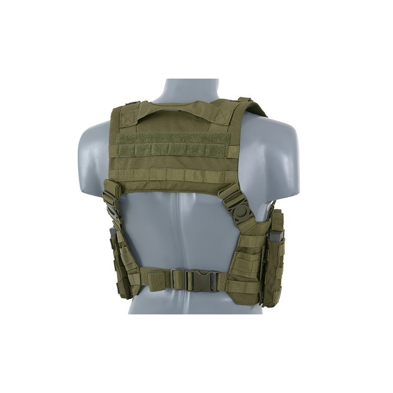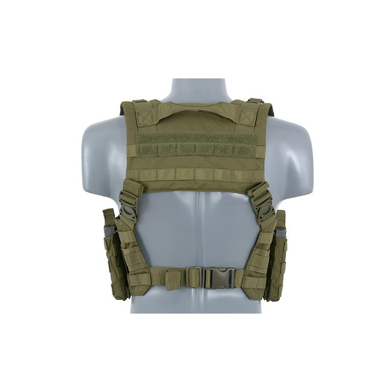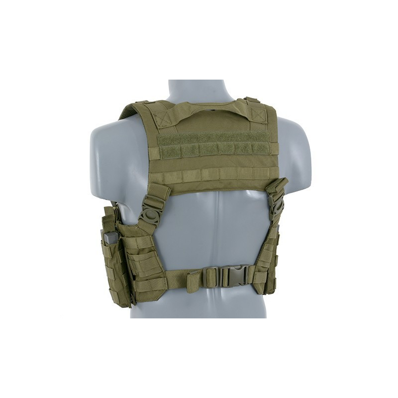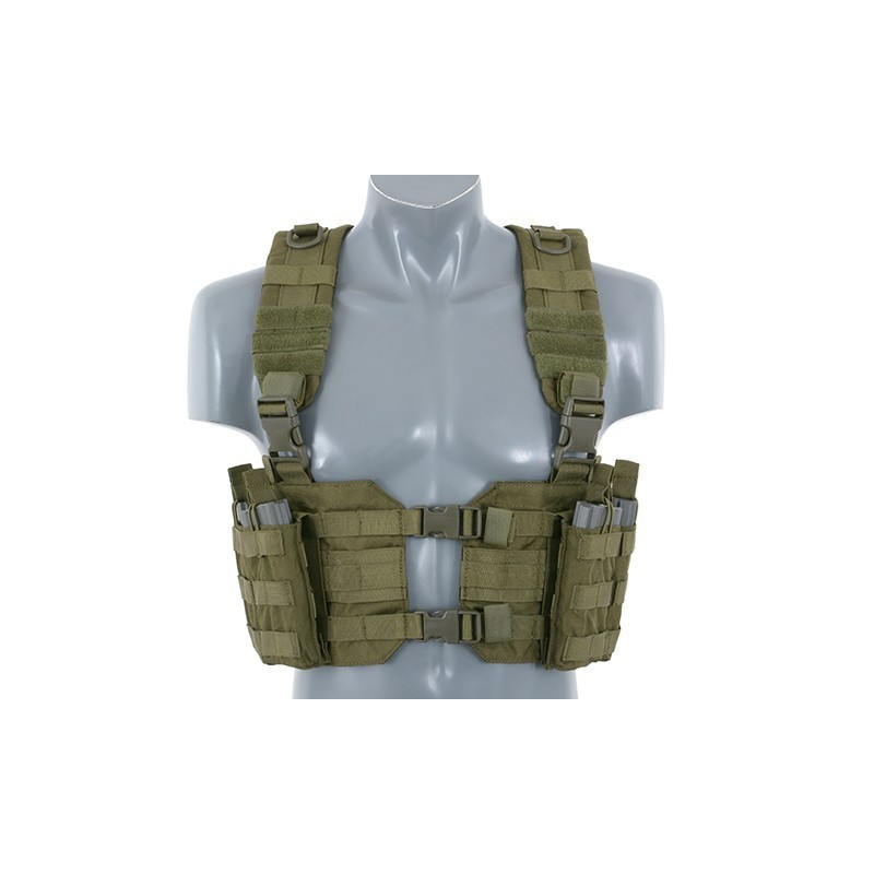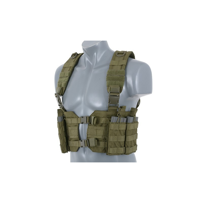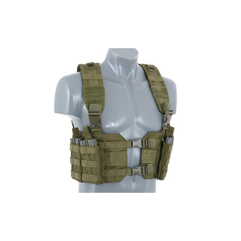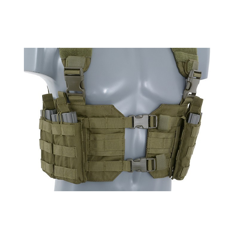 O Chest Harness é bastante utilizado por soldados profissionais para carregar magazines e outros itens essenciais. O corpo do arnês do tórax apresenta um fecho da fivela QR do centro para facilitar a remoção do equipamento do seu corpo. As alças acolchoadas ajustáveis e um arnês traseiro H ajustável permitem que este equipamento se adapte a qualquer tamanho do operador.