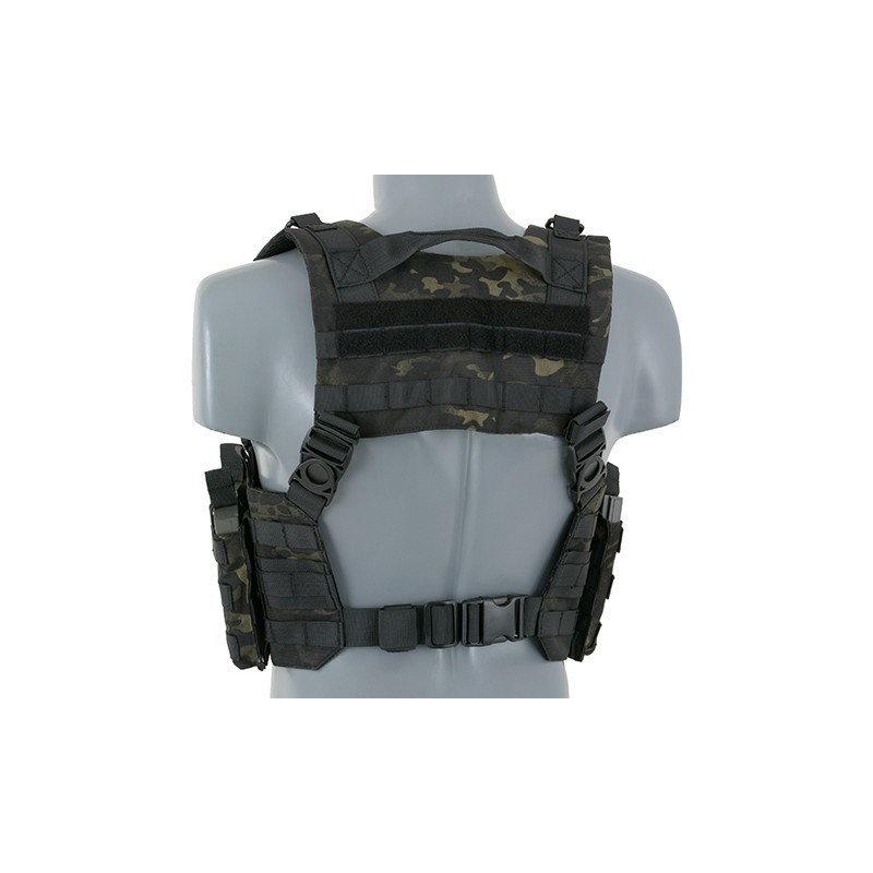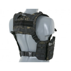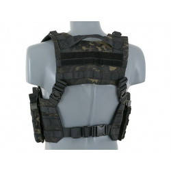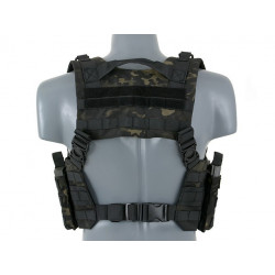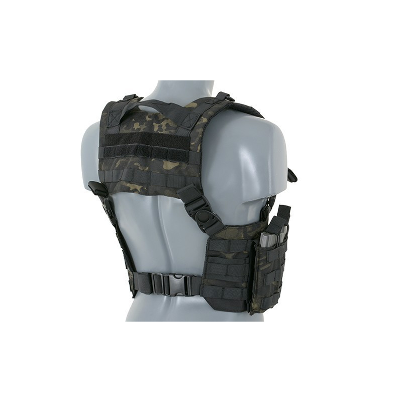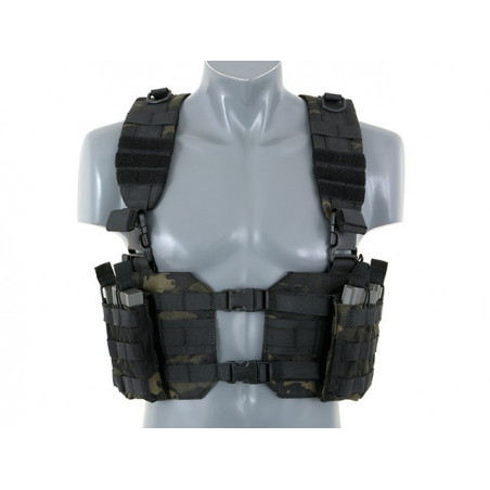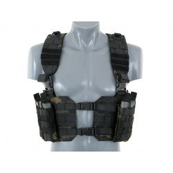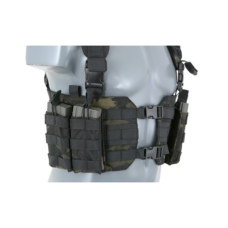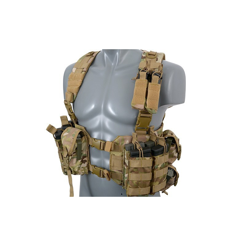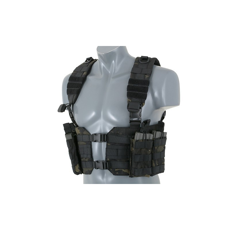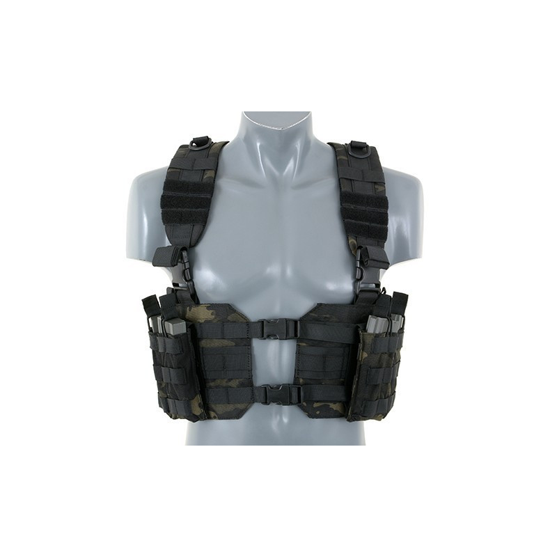 O Chest Harness é bastante utilizado por soldados profissionais para carregar magazines e outros itens essenciais. O corpo do arnês do tórax apresenta um fecho da fivela QR do centro para facilitar a remoção do equipamento do seu corpo. As alças acolchoadas ajustáveis e um arnês traseiro H ajustável permitem que este equipamento se adapte a qualquer tamanho do operador.