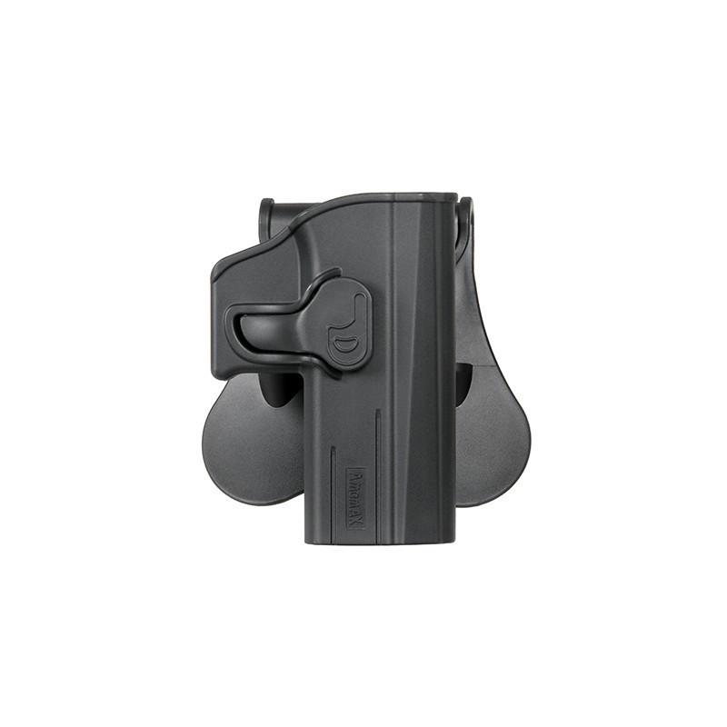 Todas as plataformas de transporte podem ser substituídas por apenas um parafuso. Para uso policial, desportos ao ar livre, treino de tiro e competição. O coldre permanecerá firme no cinto, perna e sistema MOLLE, mesmo em movimentos rápidos.
