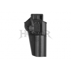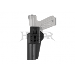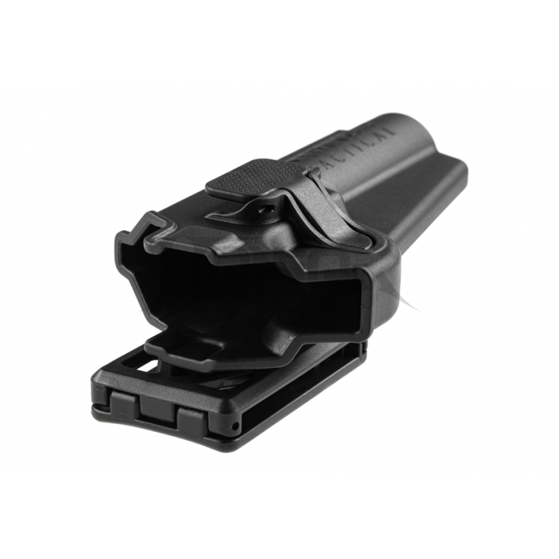 Todas as plataformas de transporte podem ser substituídas por apenas um parafuso. Para uso policial, desportos ao ar livre, treino de tiro e competição. O coldre permanecerá firme no cinto, perna e sistema MOLLE, mesmo em movimentos rápidos.