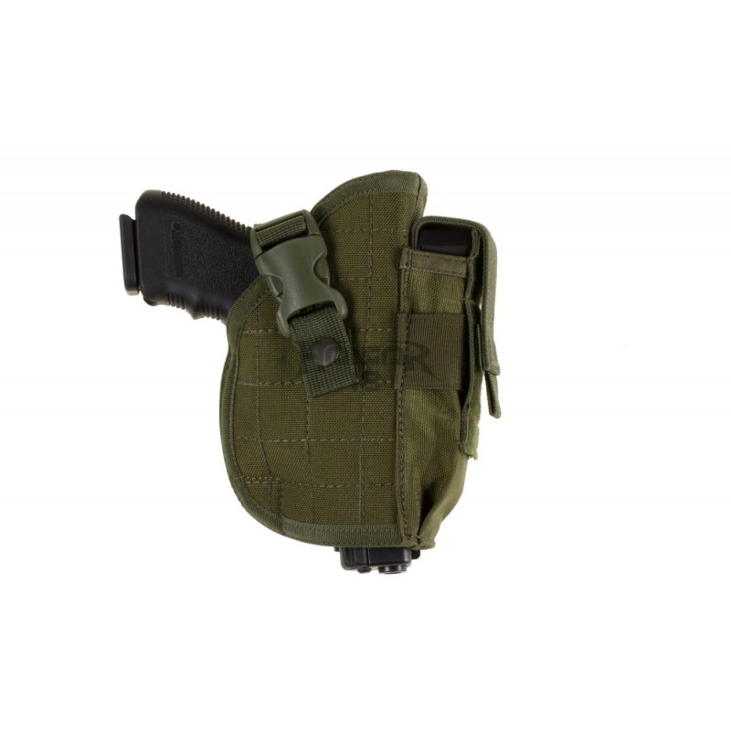 Coldre universal projetado para se adaptar a uma ampla variedade de pistolas de médio porte, como por exemplo a Glock 17 ou a Beretta 92. É equipado com bolsa para carregador integrada e fecho de cinto com ganchos e presilhas.