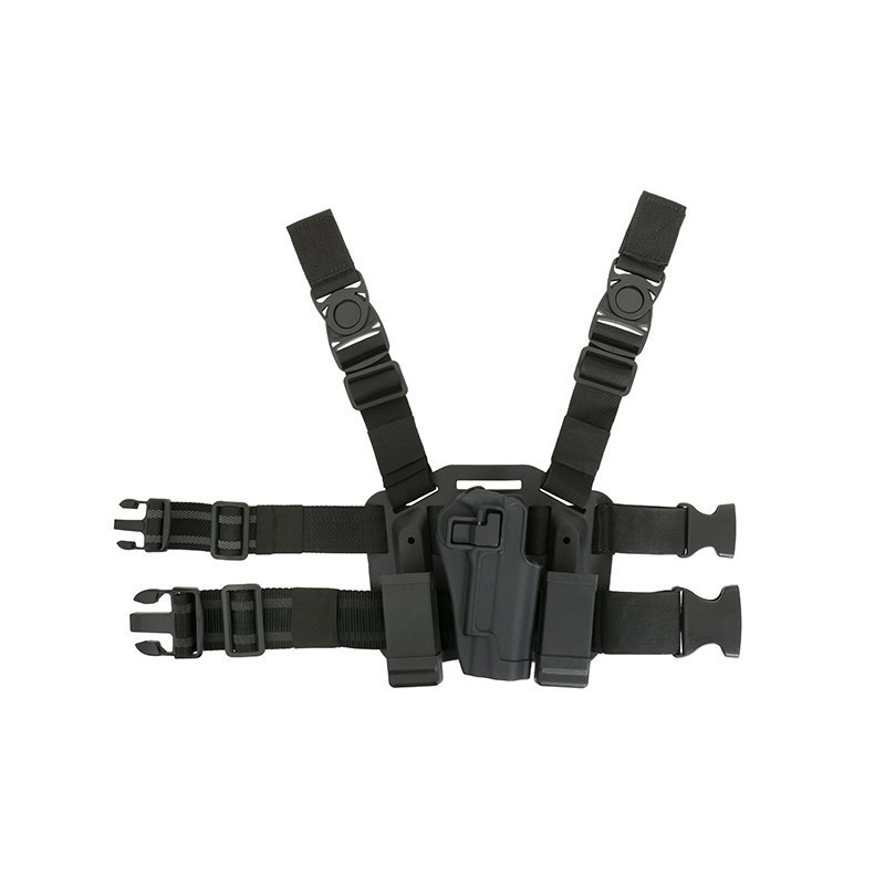 Coldre desenhado para réplicas de pistola da série 1911. É projetado para uma manipulação da pistola segura e fácil. Assim que a pistola estiver bloqueada, o gatilho fica completamente escondido, evitando a possibilidade de disparar. O bloqueio de segurança possibilita retirar a pistola num único movimento e oferece uma maior proteção contra tentativas de remoção de armas. Este coldre é para utilizadores destros.