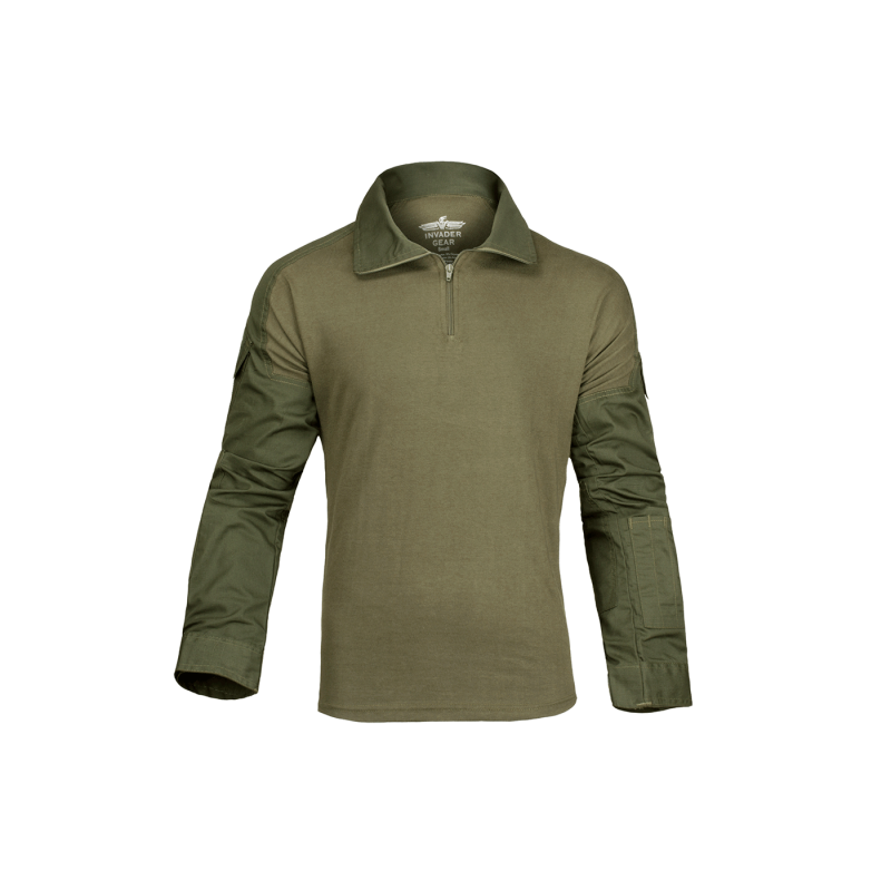 A Combat Shirt Invader Gear apresenta uma excelente relação preço-desempenho e um alto padrão de qualidade. A camisa é geralmente usada abaixo do colete e tem o objetivo de evitar marcas de pressão e fornecer boas propriedades de absorção de humidade. O corte moderno é bem equilibrado para um ajuste não muito apertado, mas também não muito largo. A coleira é equipada com um zíper de qualidade YKK e pode ser usada aberta ou fechada para evitar a entrada de detritos. Bolsos de ombro grandes fornecem armazenamento rápido e conveniente. Os cotovelos são reforçados com uma camada adicional de tecido, que também serve como compartimento para cotoveleiras. A largura da extremidade da manga é totalmente ajustável.
