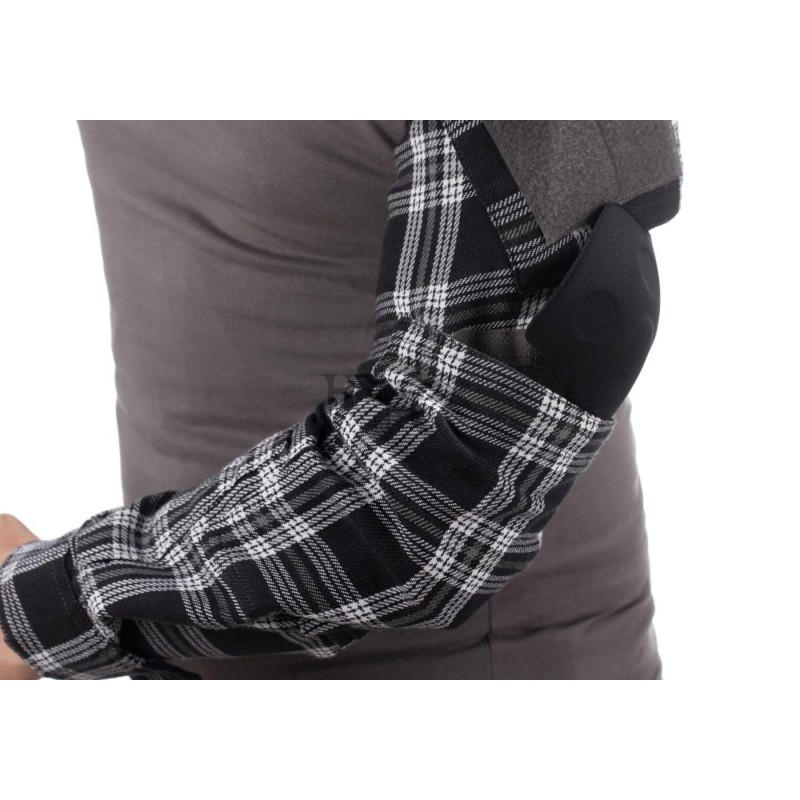 A Invader Gear foi fundada em 2004 e sempre se concentrou em equipamentos que oferecem uma excelente relação preço/desempenho. A marca oferece principalmente uma grande seleção de roupas táticas em designs modernos em uma ampla gama de cores e padrões de camuflagem e também todos os tipos de equipamentos táticos de nylon, como coletes, porta-placas, bolsas MOLLE, mochilas, almofadas de proteção, fundas e muitos outros produtos seguindo a mesma filosofia. A camisa de combate de flanela Invader Gear foi projetada para fornecer excelentes propriedades de absorção de umidade abaixo da armadura corporal. O corte moderno é projetado para um ajuste ideal para o usuário. A gola alta é projetada para proteger o pescoço de detritos e cintos de funda e é equipada com um zíper de alta qualidade da YKK. Grandes bolsos de ombro fornecem armazenamento rápido e conveniente, e na camada externa há grandes ganchos e painéis de alça para identificação da unidade ou emblemas de moral. Os cotovelos são reforçados com uma camada adicional de tecido que funciona como um compartimento para cotoveleiras. A largura da extremidade da manga é totalmente ajustável. As mangas, a gola e a área dos ombros desta Combat Shirt são fabricadas em 100% algodão. O torso é feito de um tecido de malha 50% algodão / 50% poliéster incrivelmente confortável com bom desempenho de absorção de umidade.