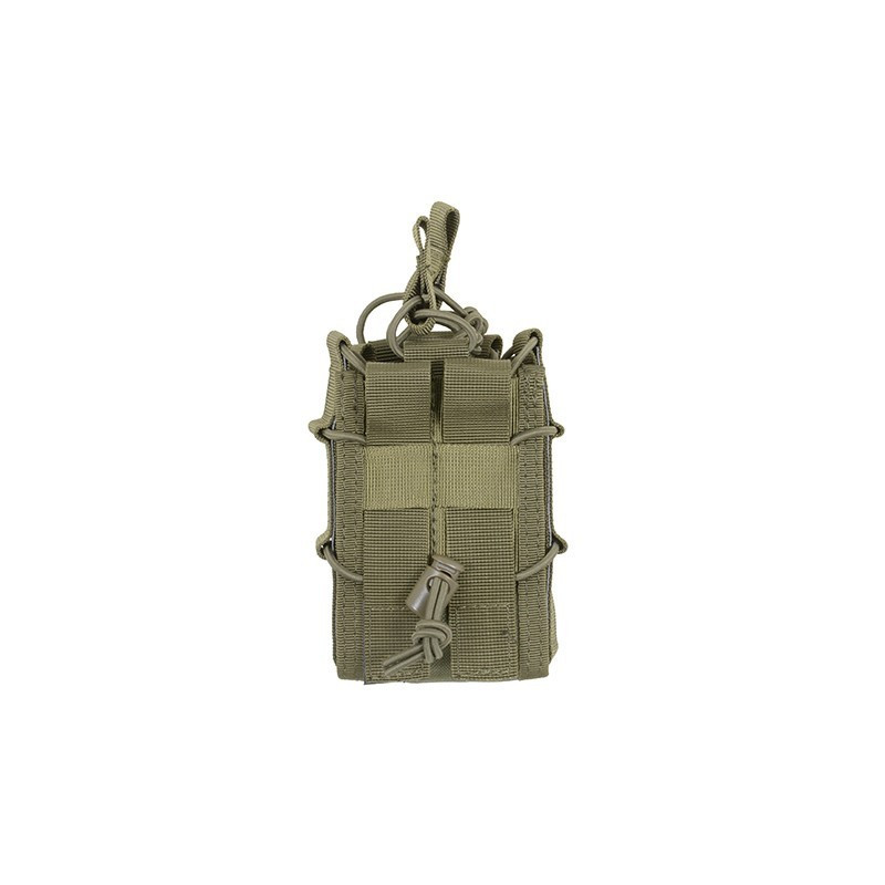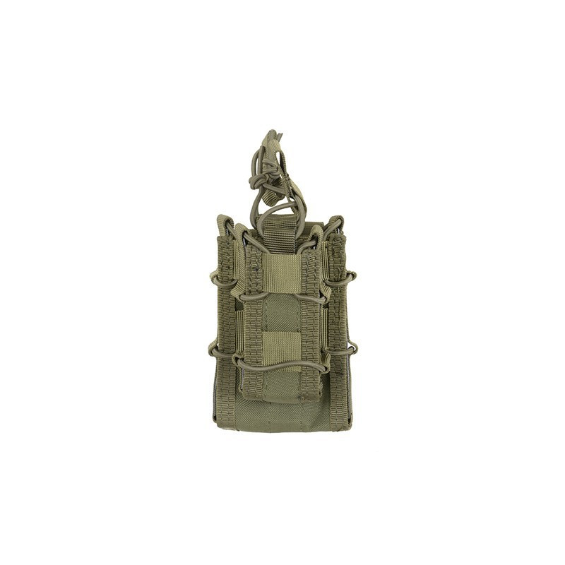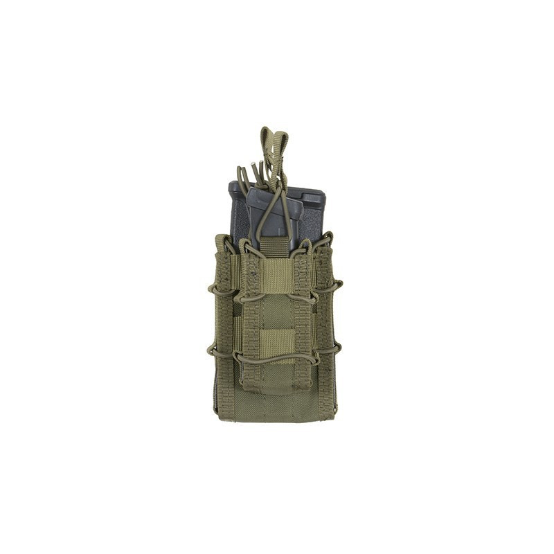 Bolsa é desenhada para transportar a maior parte dos magazines. A bolsa de magazine Combo pode armazenar magazines de estilo 5.56 e 9mm (como magazines M4, AUG, SCAR L, AK, MP5, etc.) e quase qualquer magazine de pistola (única ou dupla) ou muitos outros acessórios. A largura da bolsa é ajustada por um cabo de borracha. Além disso, esta versão da bolsa possui um cabo de borracha adicional com uma aderência confortável que protege a queda do magazine.