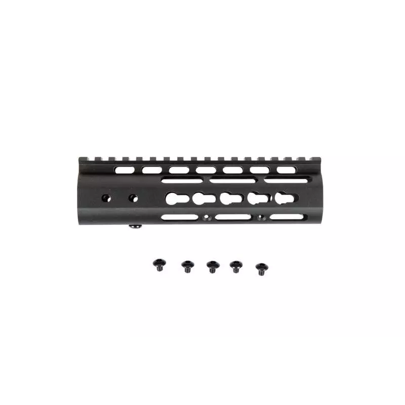 Um guarda mão RIS com sistema de montagem KeyMod 7" da Specna Arms. O guarda mão tem 177 mm de comprimento e foi feito de alumínio de alta qualidade processado usando máquinas CNC precisas. O guarda mão serve em réplicas M4 / M16.