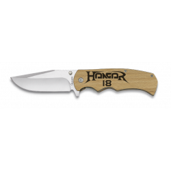 Canivete robusto com lâmina de aço inoxidável e cabo em madeira Pakkawood. Ideal para uso diário ou atividades ao ar livre.