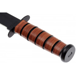 O KA-BAR USMC 1217 é uma faca lendária. Em 1942, essa faca foi escolhida pelo Corpo de Fuzileiros Navais dos Estados Unidos para ser a faca de combate dos fuzileiros navais. Desde então, esta faca faz parte do equipamento padrão de muitos soldados. Esta é uma faca grande e parece muito resistente. A alça tem peças de proteção que impedem que você se aproxime da borda afiada enquanto a usa. A lâmina é feita de aço carbono 1095, o que não torna essa faca inoxidável. Felizmente há um revestimento preto na lâmina que facilita muito a manutenção.