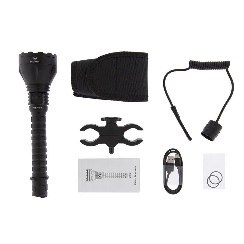 A nova lanterna Wild Boar II da B-Vision tem um alcance máximo de 1.385 metros graças à sua intensidade de 479.000 candelas e 1.370 lúmens de potência. É especialmente projetado para esperar a caça.