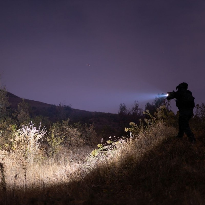 A BALDR Pro R é uma lanterna recarregável da série Baldr, projetada para uso em armas curtas. Oferece uma poderosa luz branca de até 1.350 lúmens, semelhante ao Baldr Pro, mas com a adição de um feixe de laser verde (<5mW) para mira rápida e precisa. O emissor de feixe de laser está integrado na cabeça da lanterna, permitindo espaço para a porta de carregamento na parte inferior e compatibilidade com um pressostato remoto. Alimentada por uma bateria de polímero de lítio de 3,6 V 1000mAh, esta lanterna WML pode funcionar por até 93 minutos após uma carga completa.