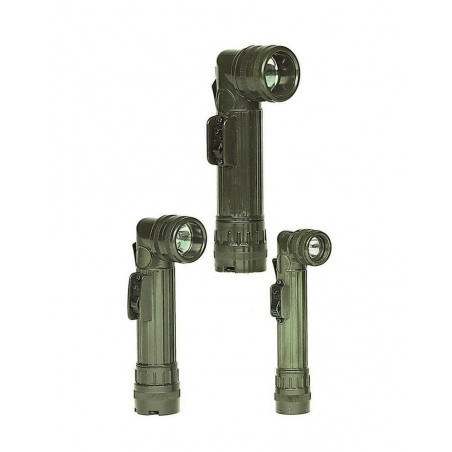 Lanterna compacta em ângulo de 90°, ideal para uso tático, militar ou outdoor. Inclui filtros de cor e clipe de fixação.