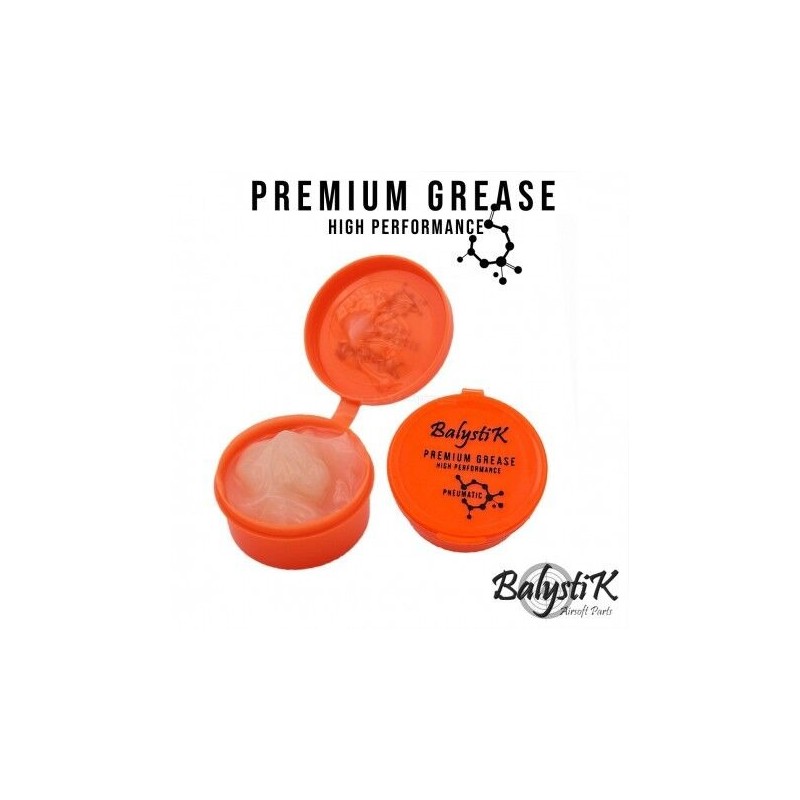 A Graxa Premium Pneumatic Balystik para AEG/HPA/GBB é uma solução formulada para lubrificação de selos móveis e fixos, pistões, cilindros, válvulas e outros componentes de sistemas de ar comprimido em réplicas de airsoft. Graças à sua estrutura lisa, homogénea e ligeiramente pegajosa, previne a fricção, protege os selos contra desgaste e mantém aderência mesmo em ciclos rápidos e sob pressão elevada.