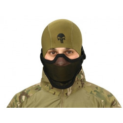 Máscara fabricada em neoprene com o padrão Multicam.