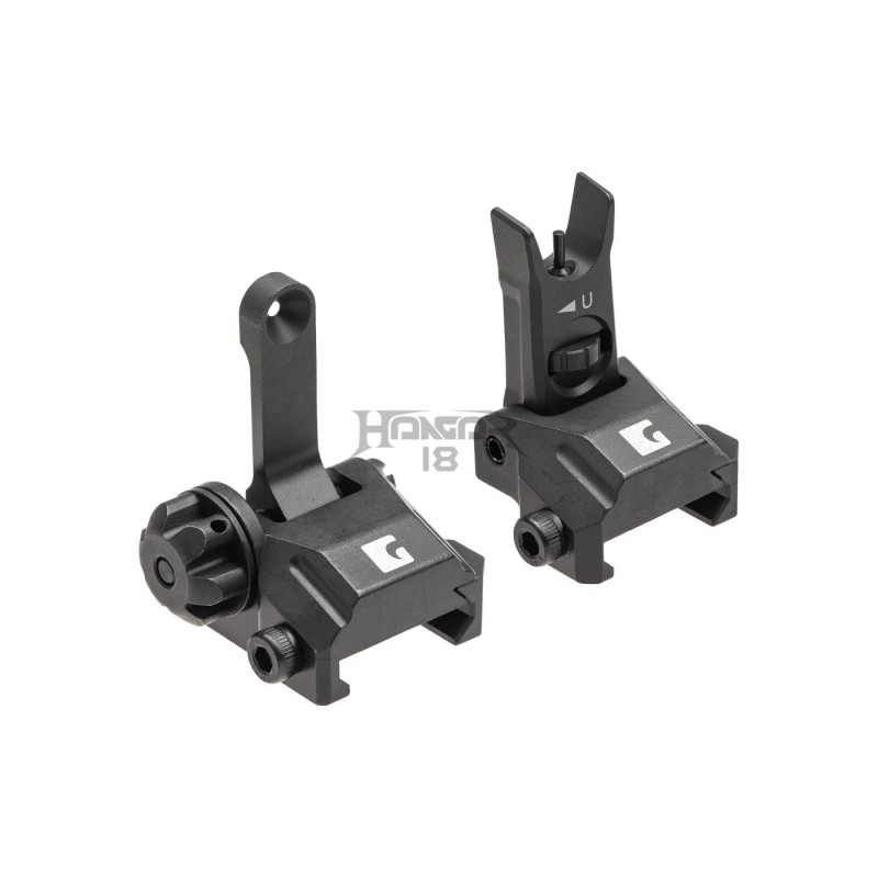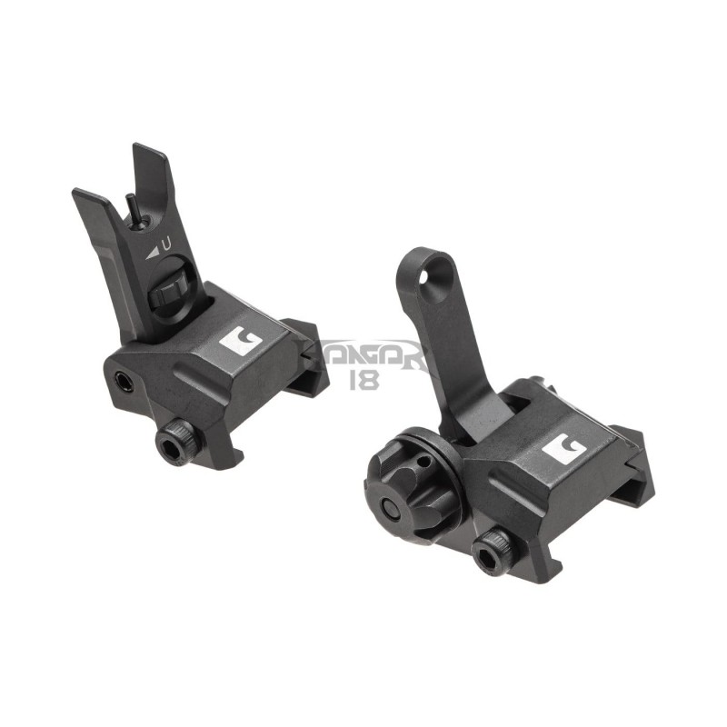 Conjunto de mira de ferro composto por mira frontal e traseira