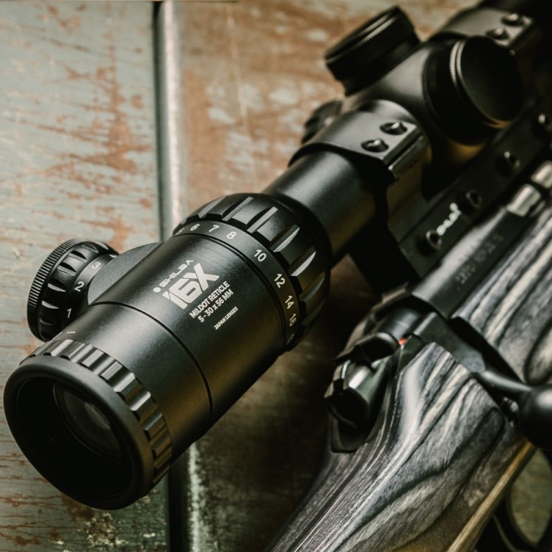 Escopo Shilba i6X série 5-30×56 com retículo Mil Dot.